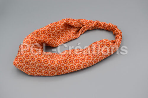 Laissez-vous séduire par ce joli bandeau orange motif rétro, cousu main dans du tissu crêpe. Affichez votre style dans toutes les facettes de votre vie.